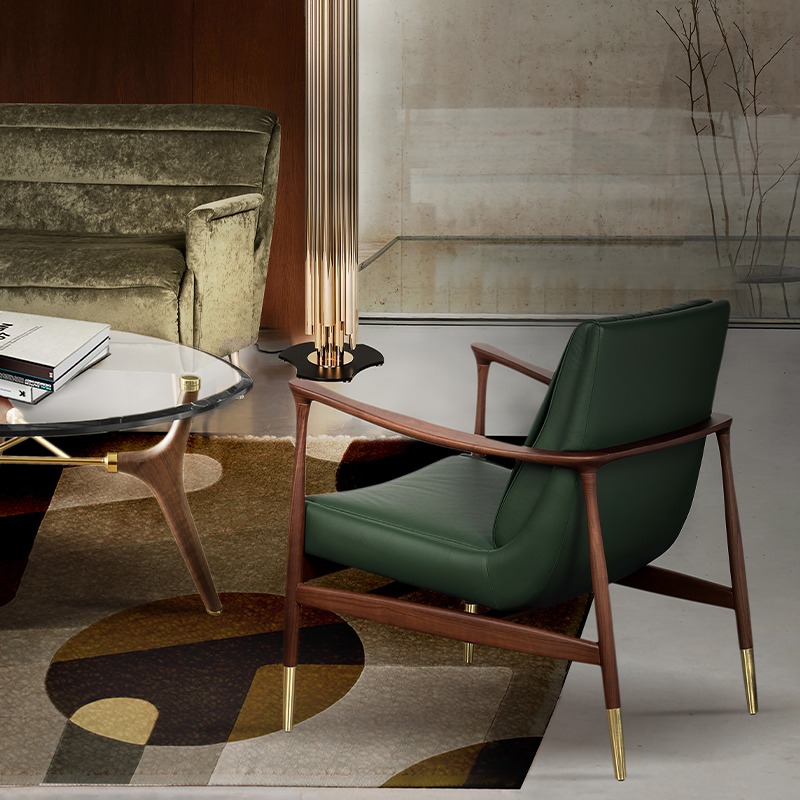 Chairs are essential in setting the tone for a luxurious interior. BRABBU’s IBIS Armchair draws inspiration from the elegance of the sacred Ibis bird. Upholstered in rich fabric with a refined brass base, this chair brings a striking visual appeal to any space. The SIKA Armchair, with its strong structure and unique shape, adds both personality and elegance to hotel reading corners, lounges, or private suites, making it a perfect choice for hoteliers seeking an eclectic and bold look.