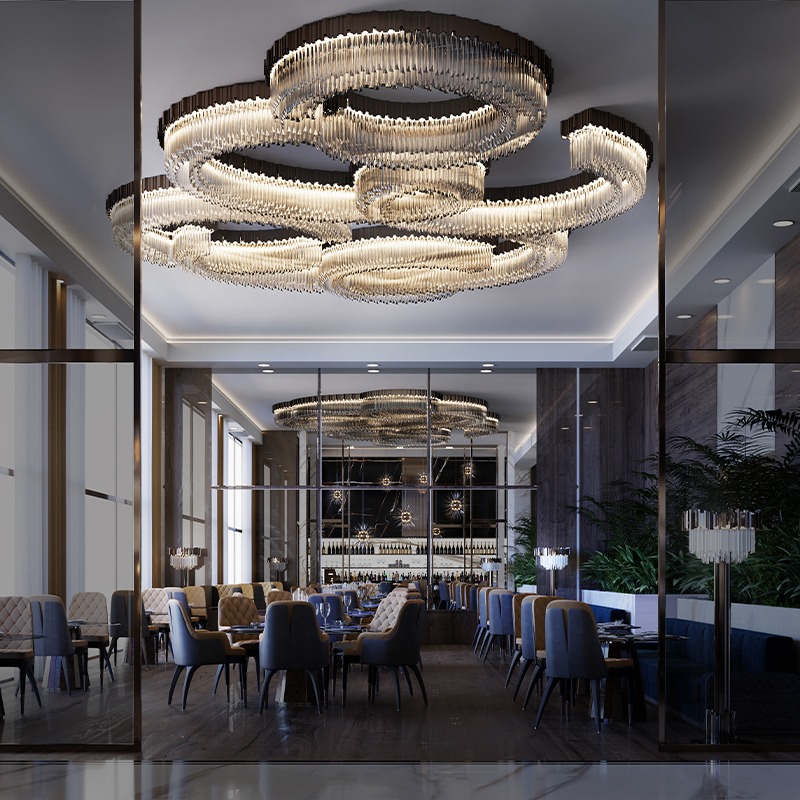 Chandeliers and artistic lighting fixtures not only provide illumination, they are also statement pieces that add to the grandeur of luxurious hotel lobbies. Their meticulous selection and arrangement create an unforgettable first impression, while contributing to the overall environment of sophistication and comfort. The NAICCA Chandelier was inspired by the fascination of Mexico’s Giant Crystal Cave, the antique brushed brass construction and Quartz crystal diffuser complement each other and enhance any room’s decor.